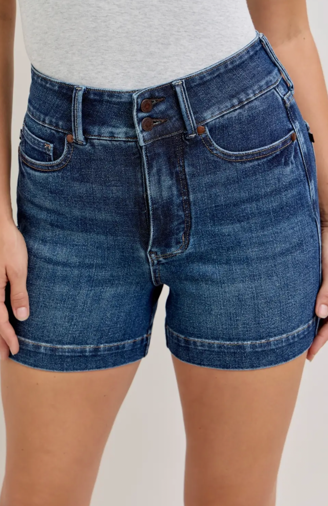 Experience the blend of contemporary style and comfort with the HW T.C. Slim Short from Judy Blue Jeans. These women's jeans are designed with a high waist, providing a flattering silhouette that elongates the thigh. Their slim fit brings a modern twist to your wardrobe, perfect for both casual and dressy occasions. Crafted with meticulous care, these jeans require hand wash to maintain their superior quality. Join the Judy Blue denim family and feel the difference in every stitch.
