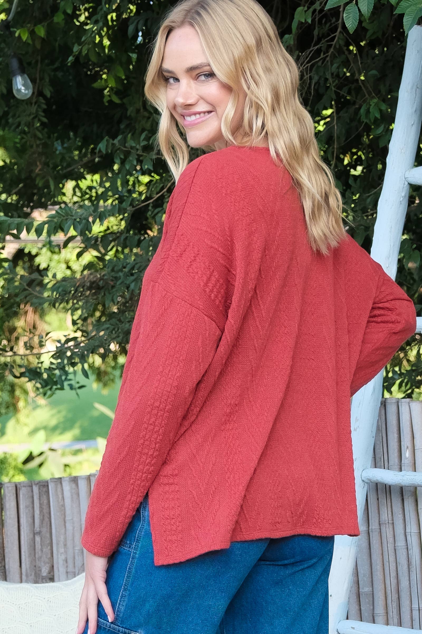 (R# 7) Oversized fit cable knit top.