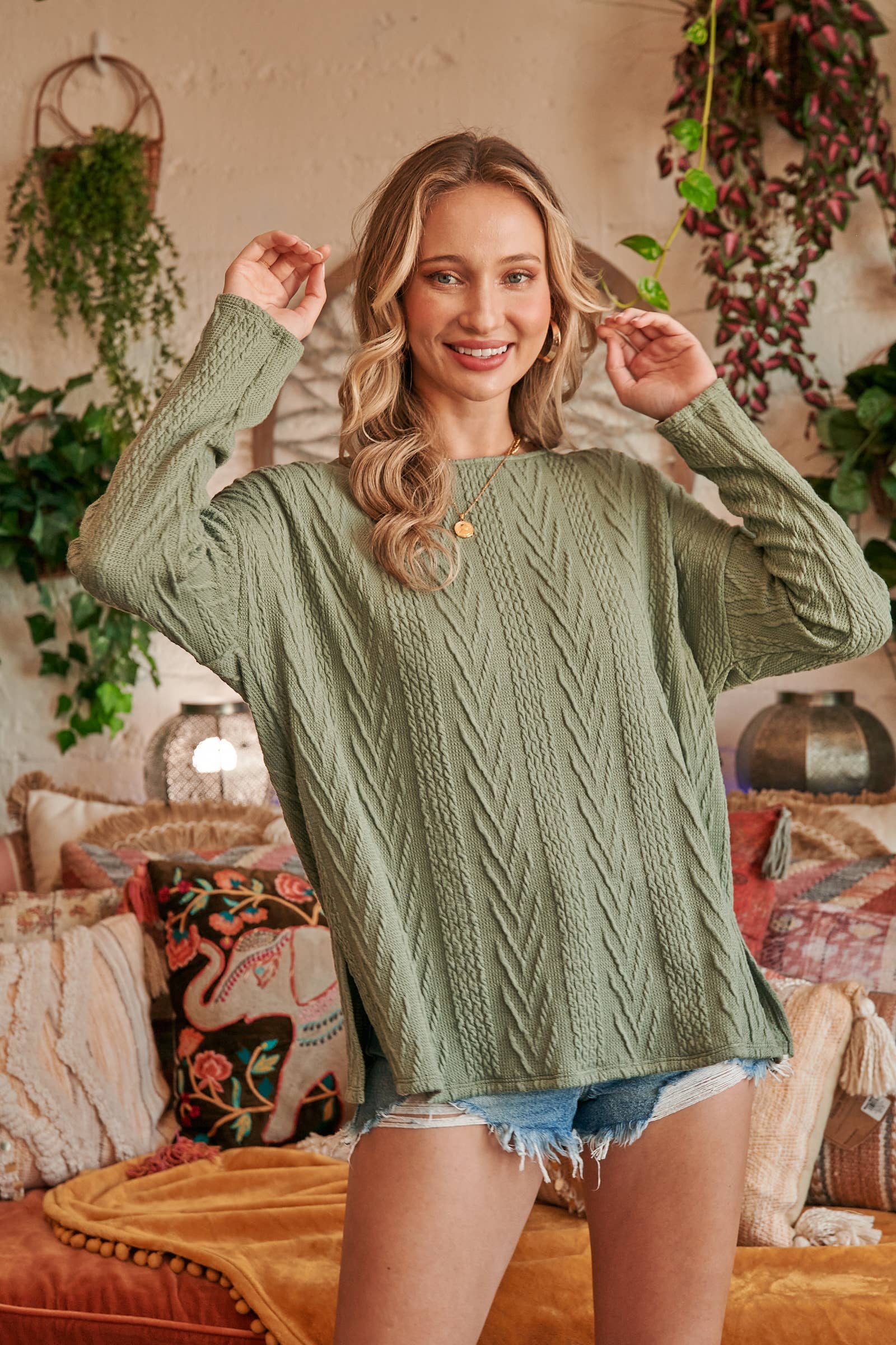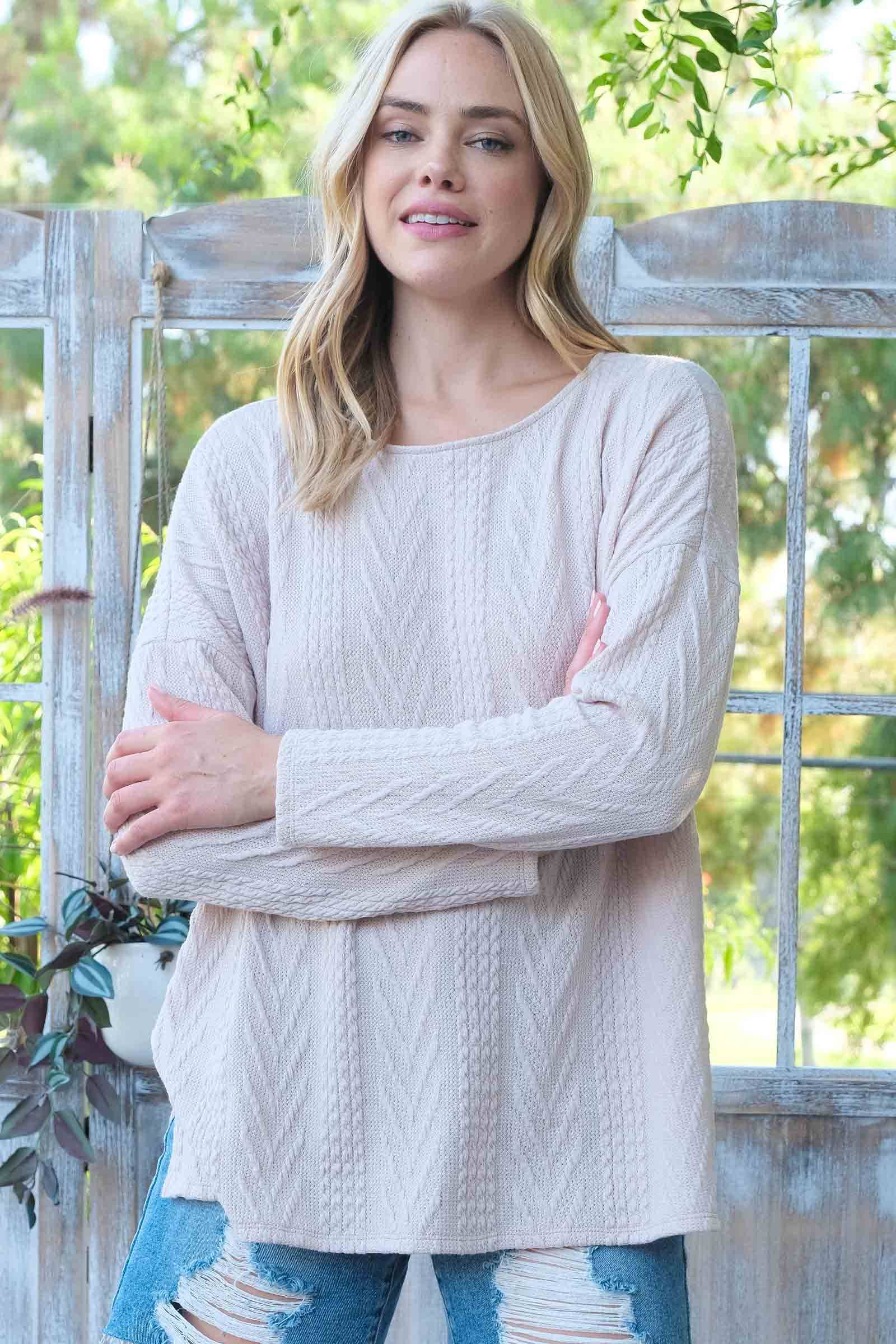 Oversized fit cable knit top-LT4996