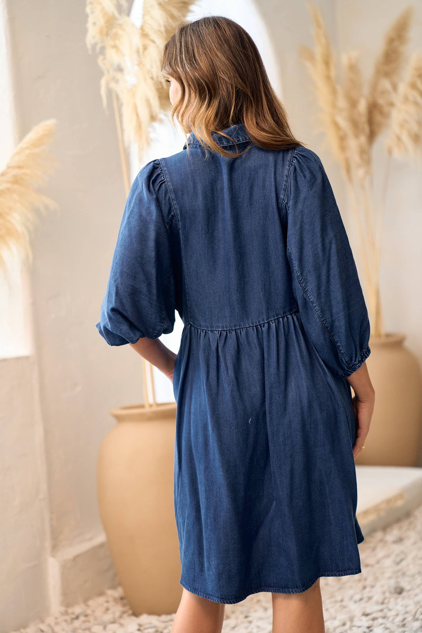 BUTTON DOWN PUFF SLEEVE MINI DRESS