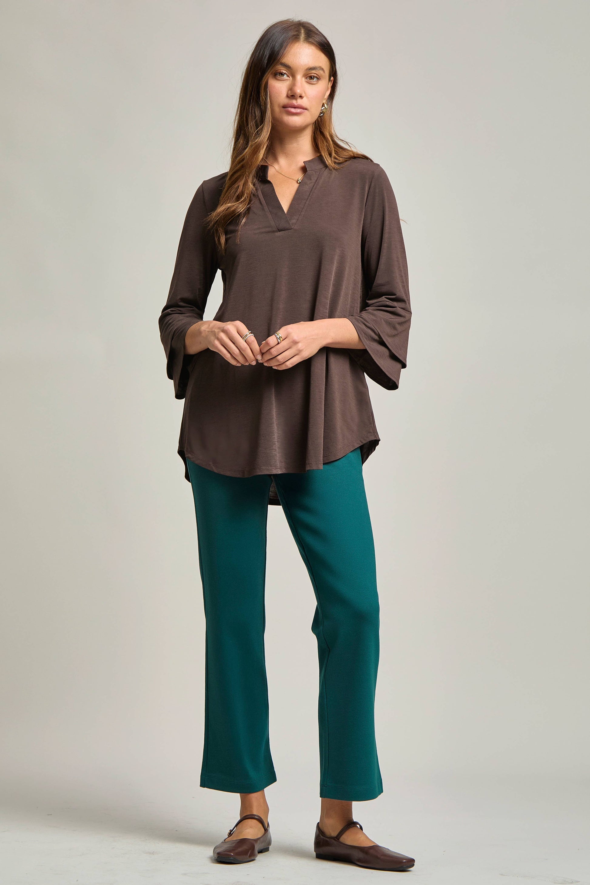 Meet the belled LIZZY! A fresh take on effortless elegance. Designed with a relaxed fit, this versatile top features a refined Lizzy neck and beautifully tiered bell sleeves that add a touch of romantic flair.